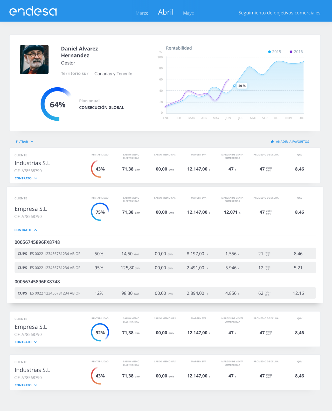 Dashboard concept design for an agent management web app. The goal here was to redesign the experience to reduce the time that agents spend managing their clients, so they can focus on what they really care about, selling.